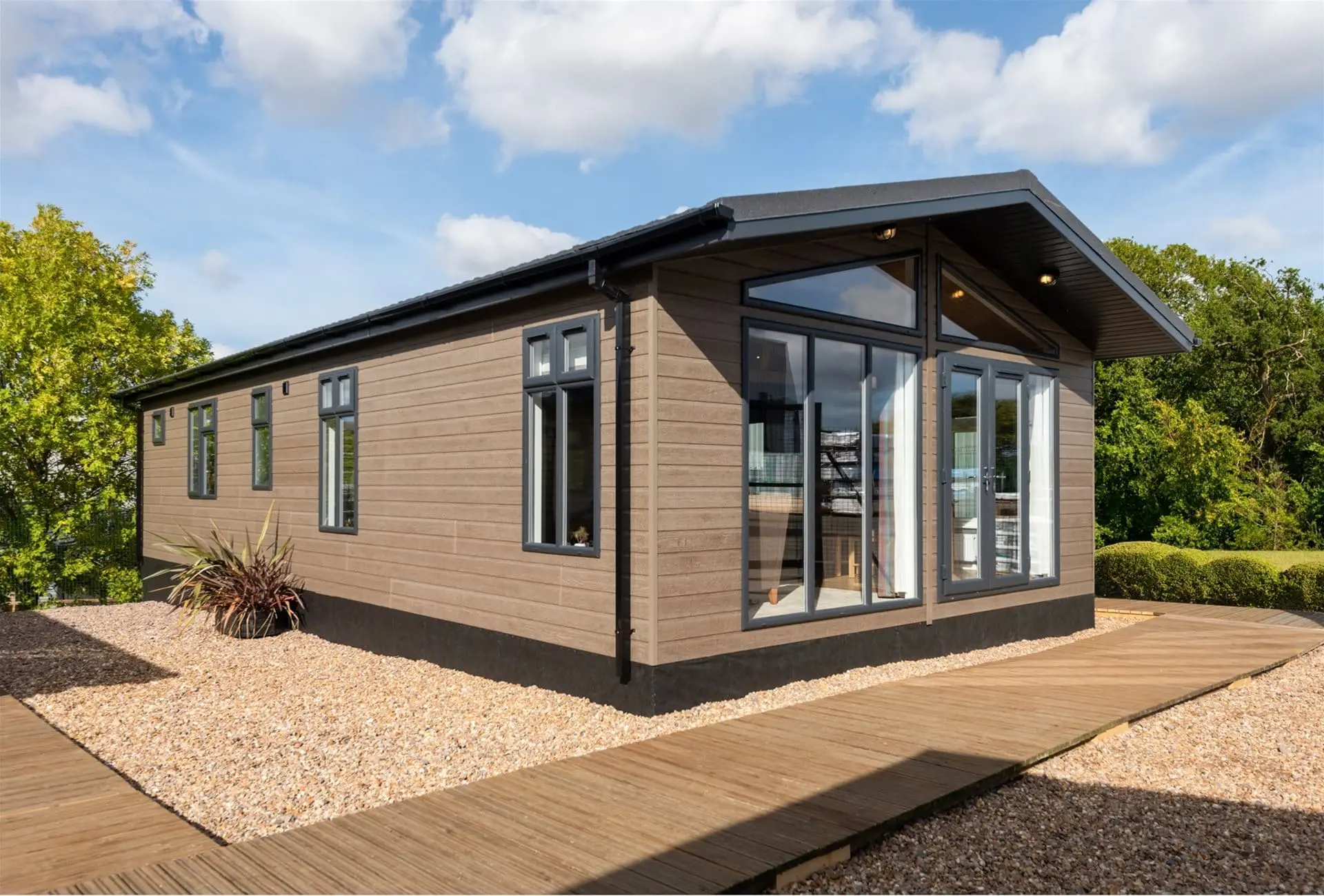 Key construction features of every home include the choice of chassis to maximise the structural performance dependant on location, layered exterior wall construction to provide optimum structural rigidity, whilst maximising thermal and sound performance, with a wide range of cladding enhancing the overall architectural feature. The thermal efficiency of the flooring optimises strength, robustness and rigidity whilst maximising the moisture barrier. Windows and doors are built in our own specialist factory, fitted to the highest standards, providing excellent all year-round thermal performance just as you’d find in a traditional home. Built to BS3632 standard with additional warranties and guarantees relating to the galvanised steel roof (40 years), fixtures and fittings warranty and the Platinum Seal Park home lodge Warranty are all provided.
